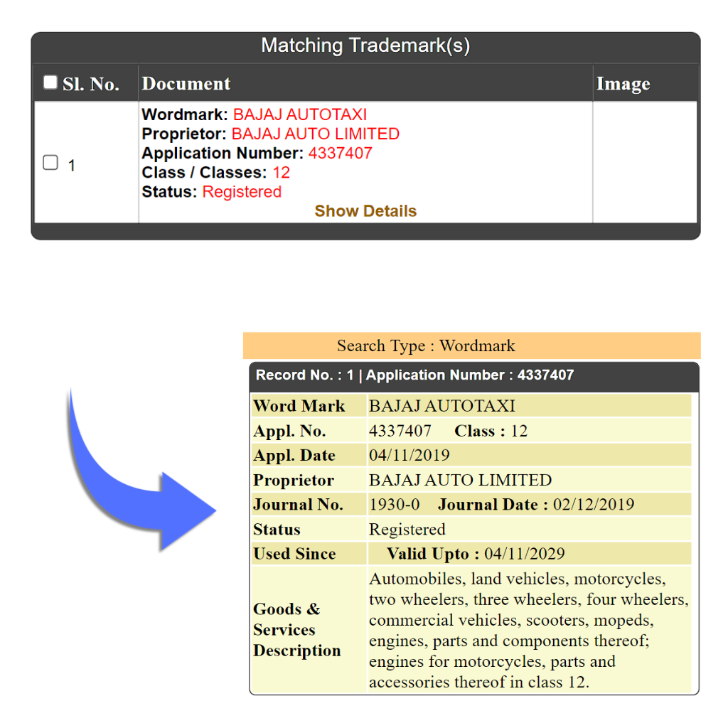 Example: Bajaj Auto Limited a significant trademark in the automotive sector engaged in manufacturing motorcycles, scooters, and auto rickshaws.
