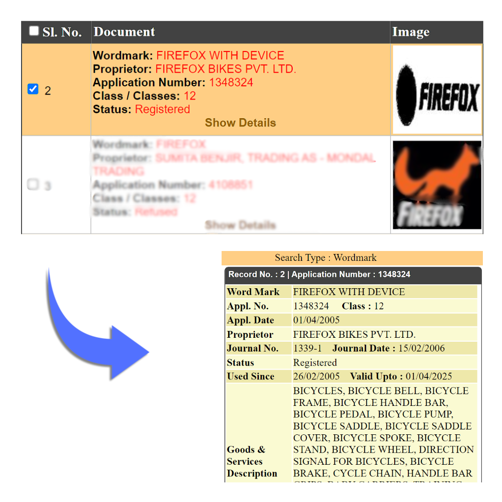 Example:  Firefox is a well-known brand in India engaged in the business of producing bicycles and cycling components for a wide range of users, including children, women, off-road mountain bikes, city bikes, hybrid and BMX cycles.