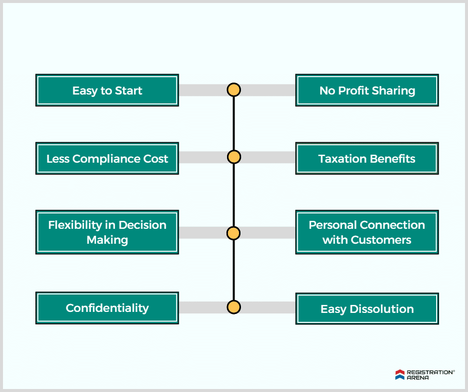 In a sole proprietorship firm, a single person makes all the business decisions, resulting in easy and simple business operations. As the sole owner of the business, he has the freedom to make desired changes in business operations, strategy, structure, and other aspects without requiring consent from third parties or partners.