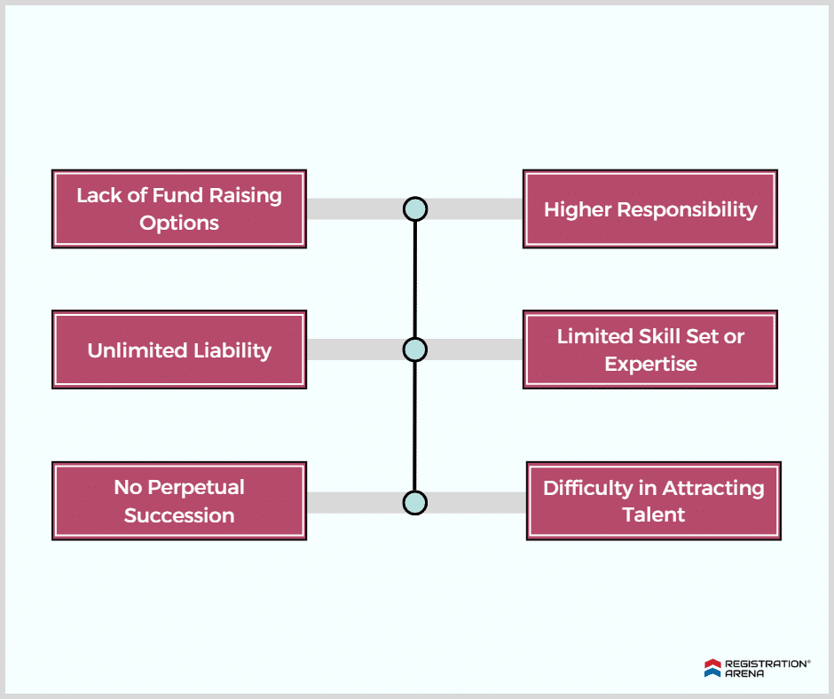 We all know that ‘With great power comes great responsibility’. Similar is the case with sole proprietorship. The single owner is responsible for decision-making as well as managing the operations of the business. Therefore, the owner becomes overburdened with work.