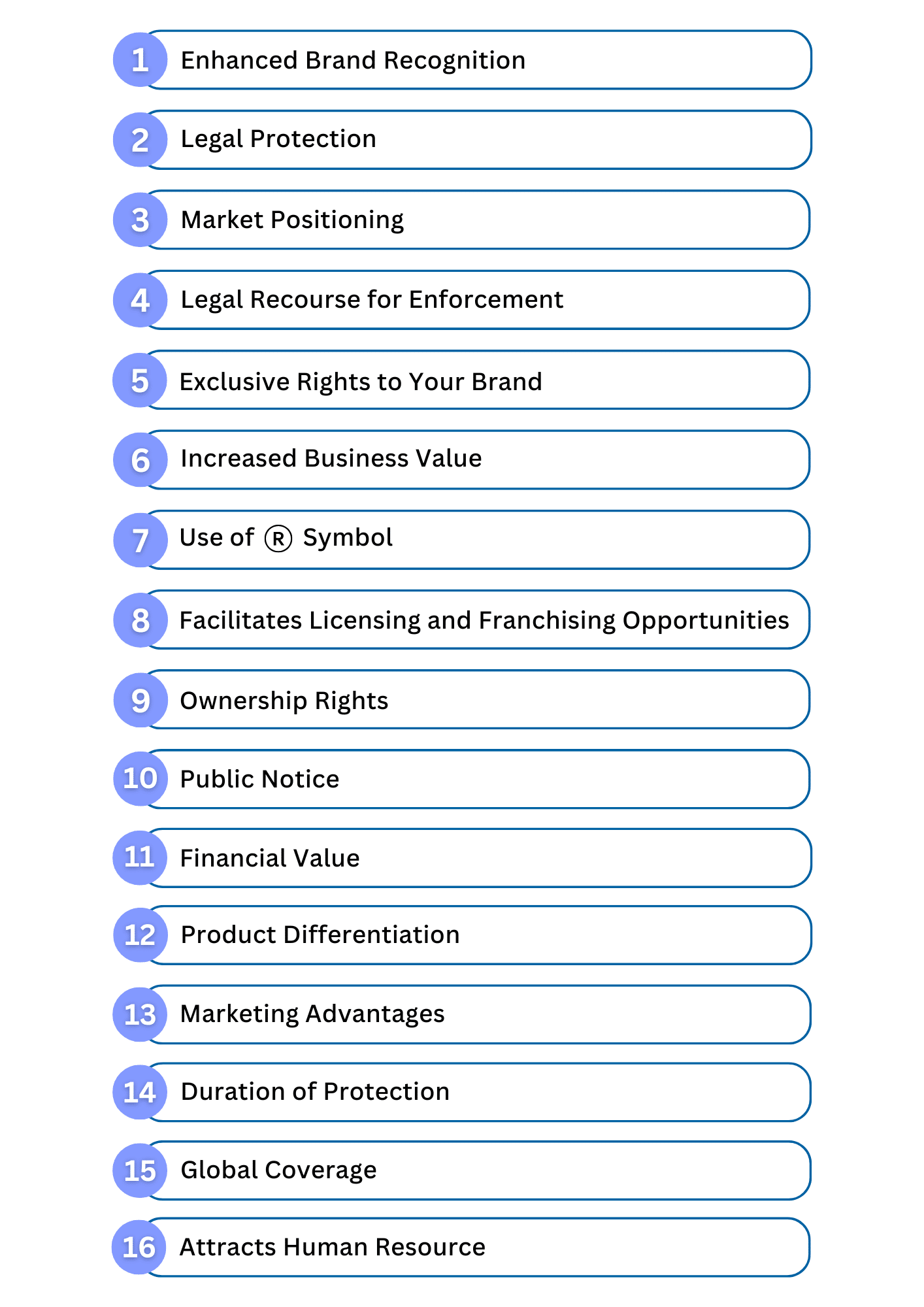 A trademark is an intangible asset that adds value to one’s business. When seeking investments, mergers, or acquisitions, having a registered trademark can significantly enhance your company’s worth. Investors are more likely to invest in a business with a strong, legally protected brand.