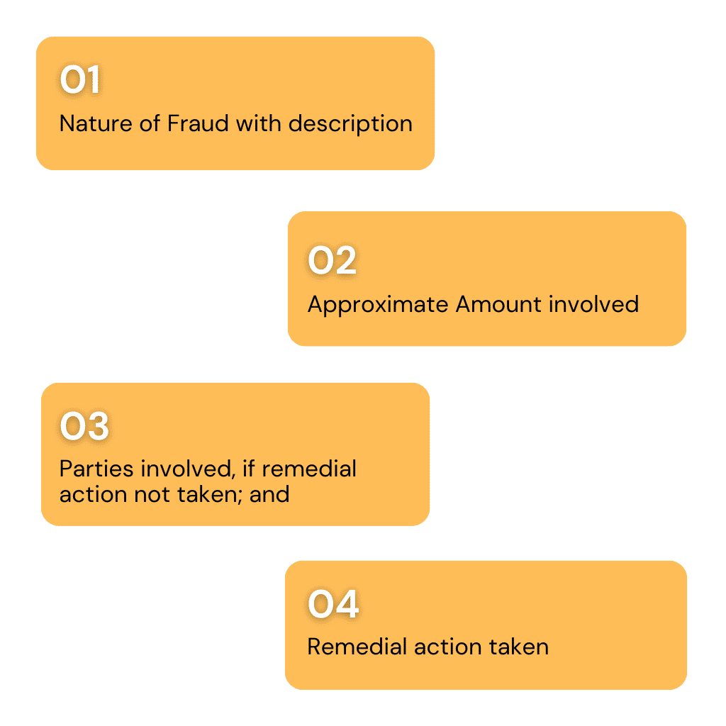 c.(a) Details in respect of frauds reported by auditors under sub-section (12) of section 143, other than those reportable to the Central Government, should be included in the Board’s Report. These details should encompass: