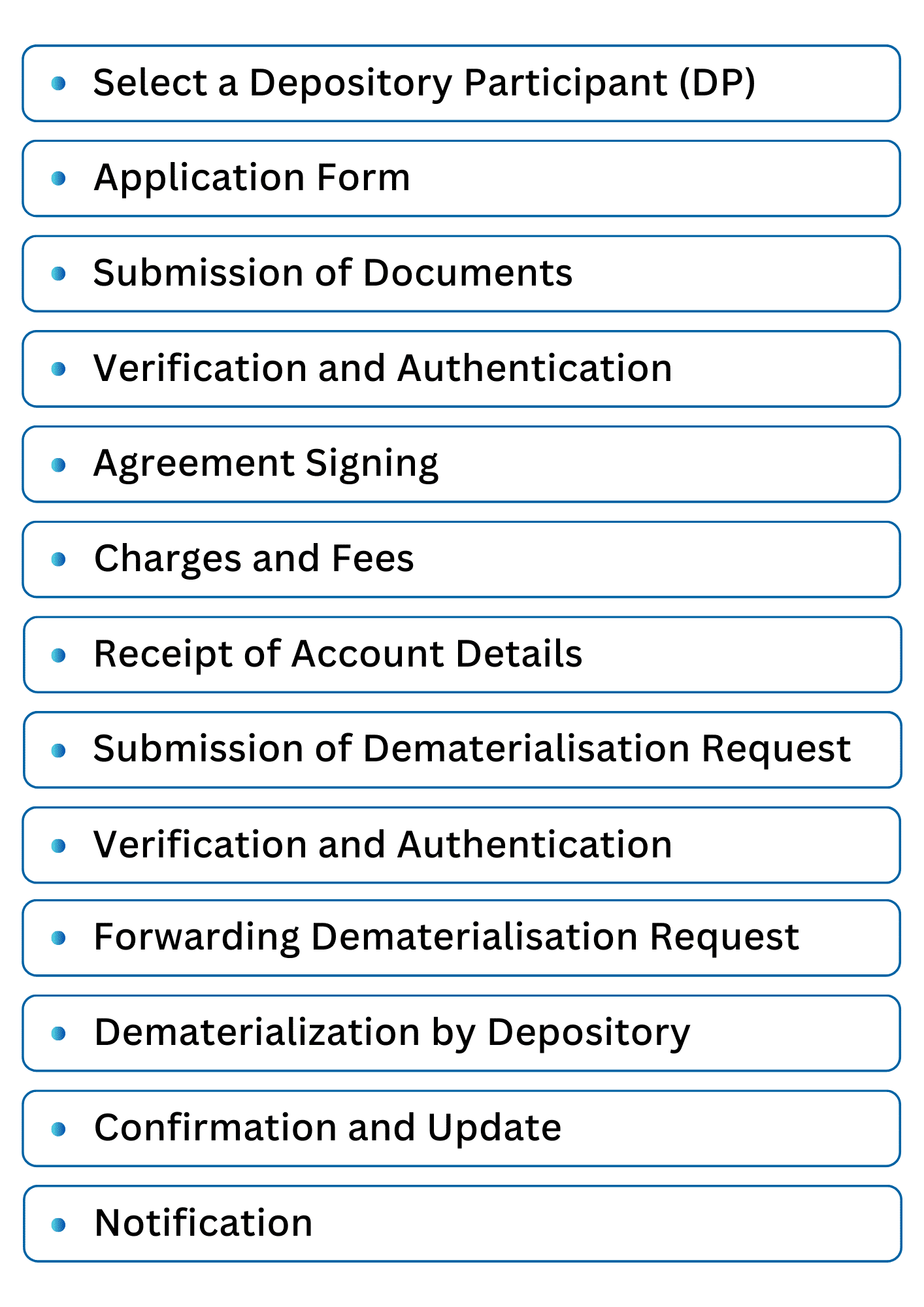The shareholders must be informed by the Company about their decision to dematerialize shares and provide guidance on the process. The shareholders must be provided guidance by the Company for opening their demat account with a Depository Participant (DP). The process of opening a demat account by a shareholder is enumerated below in detail.