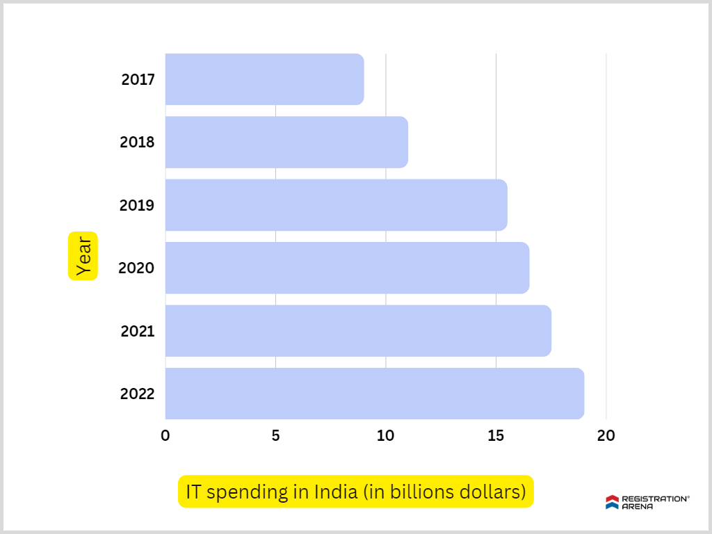 Further, the following graph shows the increase in IT spending in India –
