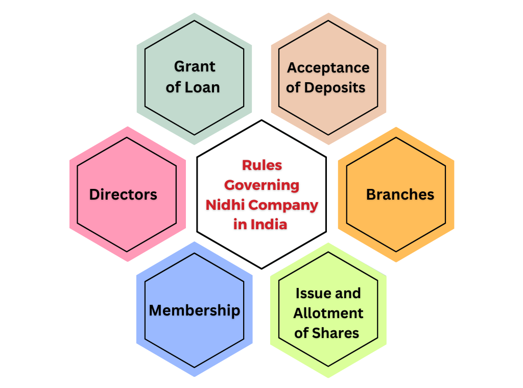 Nidhi Company is a type of NBFC i.e., a Non-Banking Financial Company, engaged in the business of accepting deposits from members and providing loans to them. Although Nidhi Company is a type of NBFC, it is neither required to obtain a license from the Reserve Bank of India (RBI) nor follow the guidelines and directions issued by RBI. Instead, the Ministry of Corporate Affairs (MCA) regulates and formulates rules for Nidhi Companies in India. In this article, we will discuss the major rules governing Nidhi company relating to loans, deposits, opening and closing of branches, directors, etc.