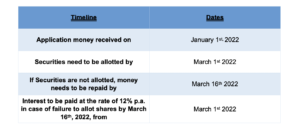 Further, in case of failure by the company to allot the securities, all the money received needs to be repaid to the investors within 15 days post-completion of 60 days period. Post this period the company is liable to pay interest at the rate of 12% p.a. to the investors. For better understanding an example is given below: