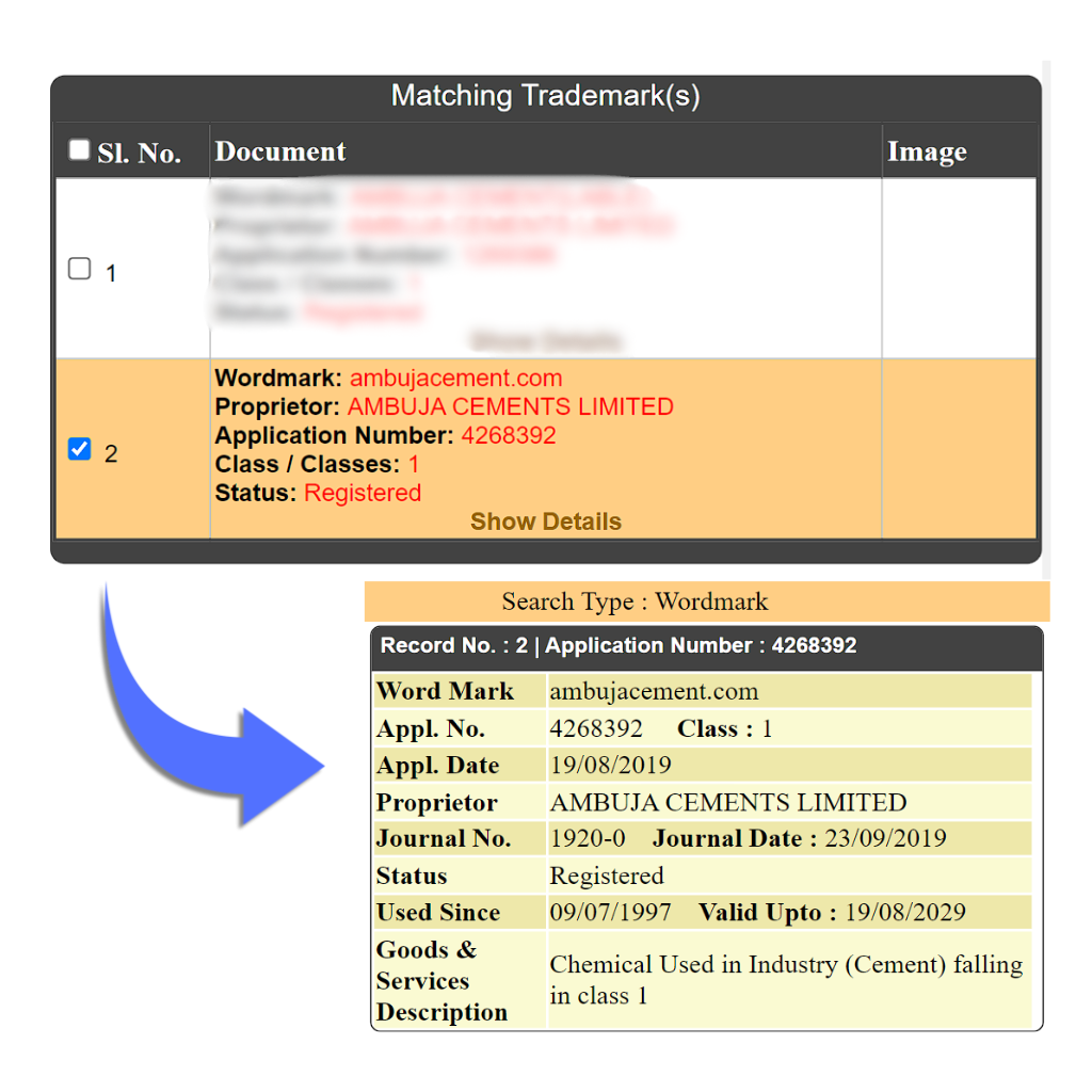 Example: Ambuja Cements is India’s top cement manufacturing and supplier company registered under Trademark Class 1.