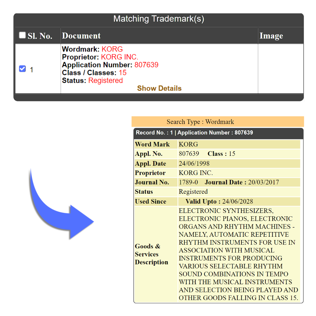 Before starting with the registration process under Trademark Class 15, a detailed Trademark Search is required to be conducted to ensure that the proposed trademark is unique and does not conflict with existing trademarks under Trademark Class 15. Search can be carried out online through the official website of the Trademarks Registry (https://tmrsearch.ipindia.gov.in/tmrpublicsearch).