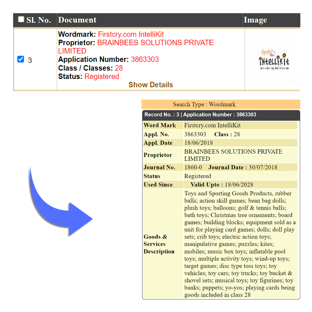Before starting with the registration process under Trademark Class 28, a detailed Trademark Search is required to be conducted to ensure that the proposed trademark is unique and does not conflict with existing trademarks under Trademark Class 28. Search can be carried out online through the official website of the Trademarks Registry (https://tmrsearch.ipindia.gov.in/tmrpublicsearch).