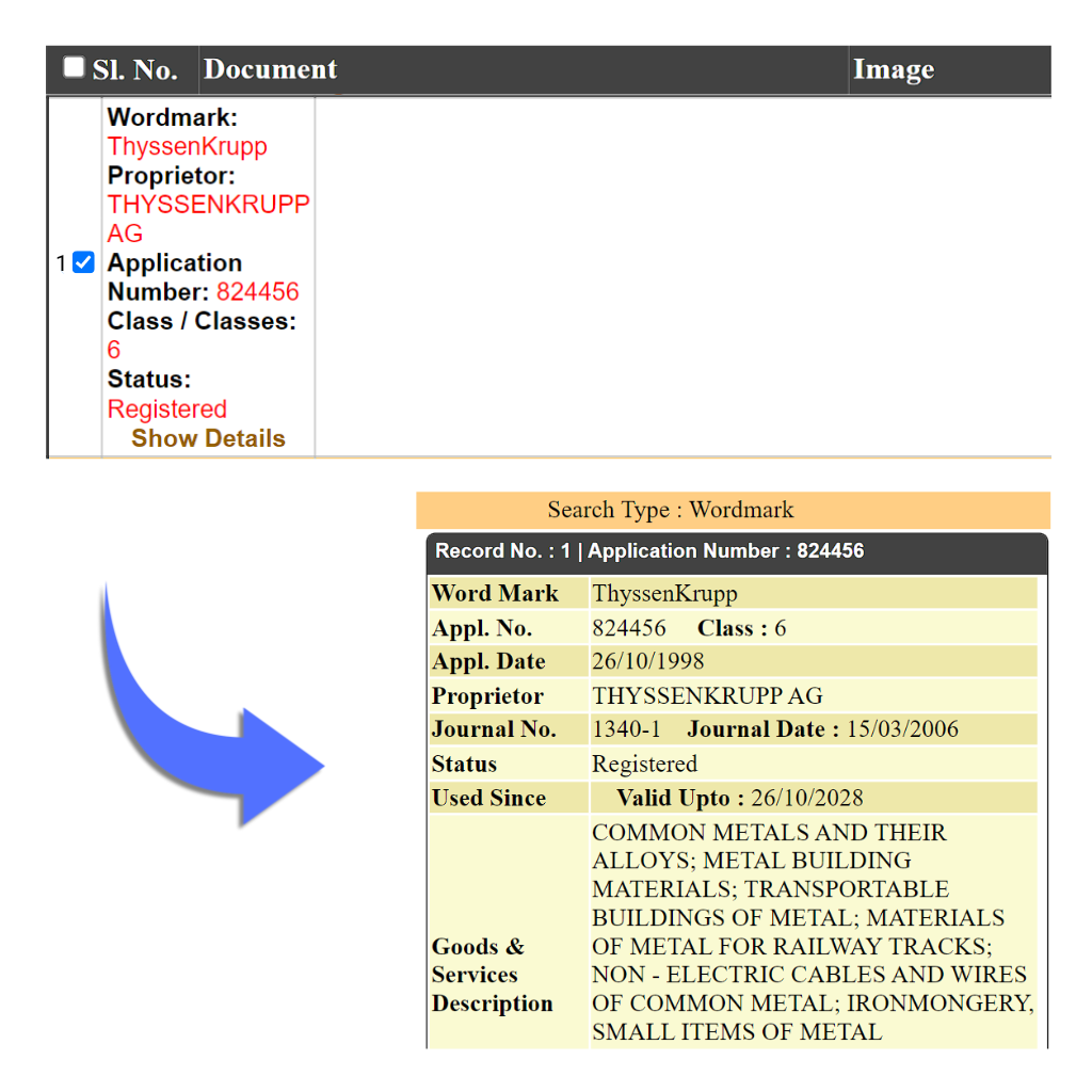 Before starting with the registration process under Trademark Class 6, a detailed Trademark Search is required to be conducted to ensure that the proposed trademark is unique and does not conflict with existing trademarks under Trademark Class 6. Search can be carried out online through the official website of the Trademarks Registry (https://tmrsearch.ipindia.gov.in/tmrpublicsearch).