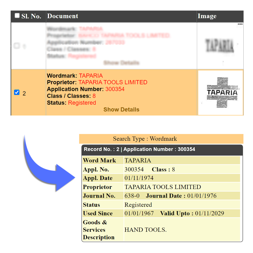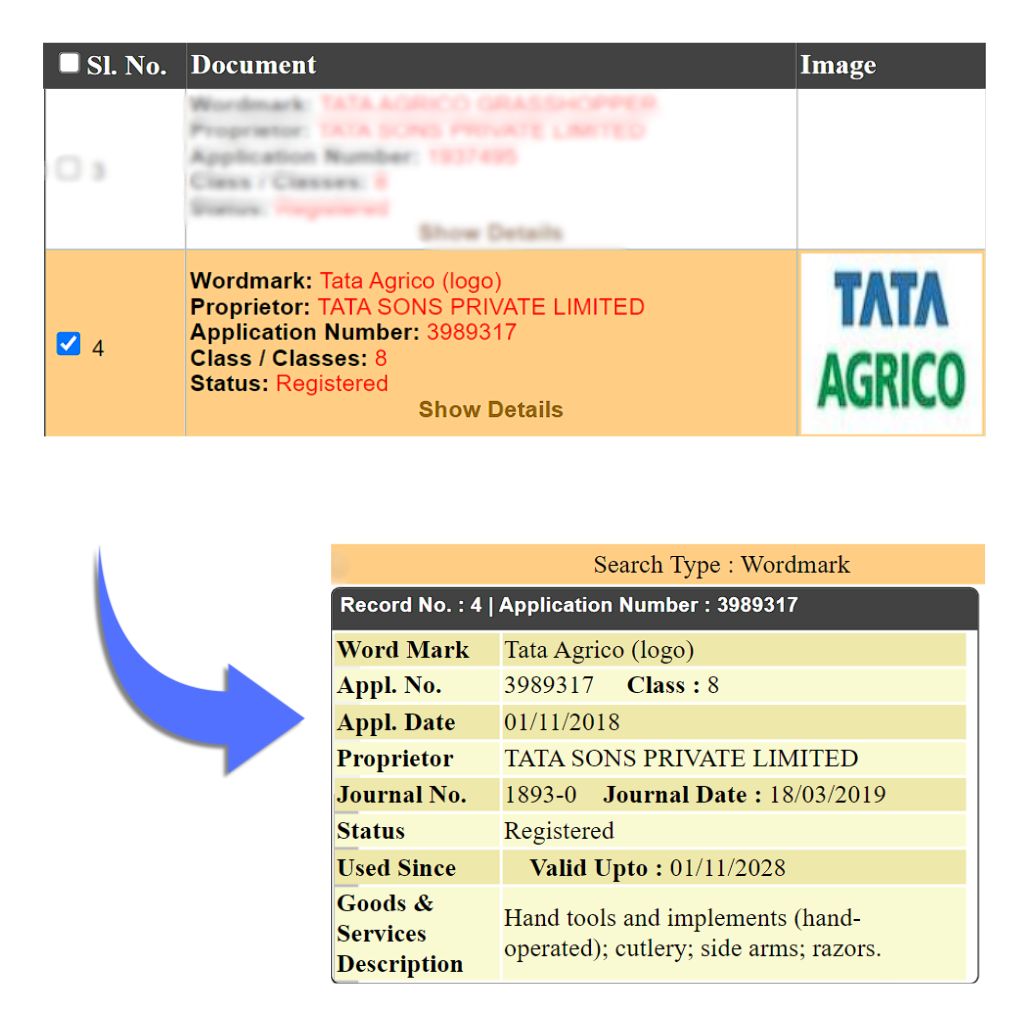 Before starting with the registration process under Trademark Class 8, a detailed Trademark Search is required to be conducted to ensure that the proposed trademark is unique and does not conflict with existing trademarks under Trademark Class 8. Search can be carried out online through the official website of the Trademarks Registry (https://tmrsearch.ipindia.gov.in/tmrpublicsearch).